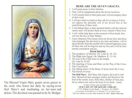 For those new to this devotion, Our Lady promises (According to St. Bridget of Sweden)